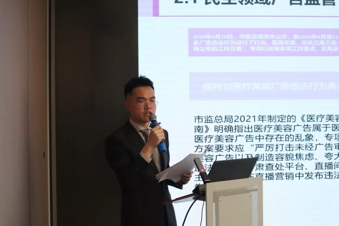 上海邦信阳律师事务所合伙人张士海律师就 2024年广告执法数据和化妆品、医疗器械、药品、酒类及普通食品的重点行业的典型案例进行了评析。张士海律师结合自身经验就所呈现执法数据背后的原因及重点案例的典型意义进行了生动的讲解。