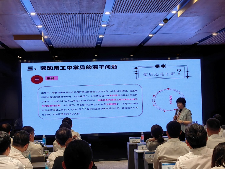围绕企业劳动用工的法律风险管理与防范措施,涉法涉诉处理等方面难点、热点问题,殷滤律师做了题为“劳动用工常见纠纷风险分析及应对”的专题讲座。讲座分析了企业关注的常见用工形式及其主要差别,并针对性地对劳动用工中常见的若干问题进行总结、归纳。殷滤律师以其深厚的法律功底和丰富的从业经验,从法律法规的基本规定入手,同时结合大量的实际案例,深入简出地剖析了中铁置业集团有限公司及其子公司在实际用工中所关心的问题,并对其进行了分类指导。殷滤律师的讲座生动活泼,现场互动氛围积极,反响良好。