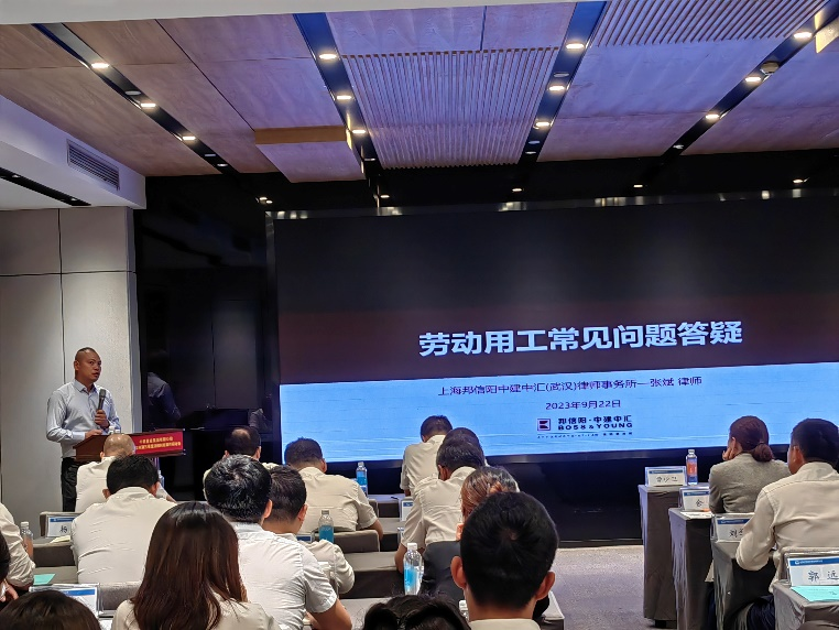 9月22日,邦信阳武汉办公室合伙人殷滤律师、合伙人张斌律师受邀参加中铁置业集团有限公司“2023年第三季度法律纠纷案件研讨会”,邦信阳武汉办公室成功举办劳动法专题讲座与劳动争议实务法律咨询专场沙龙活动。