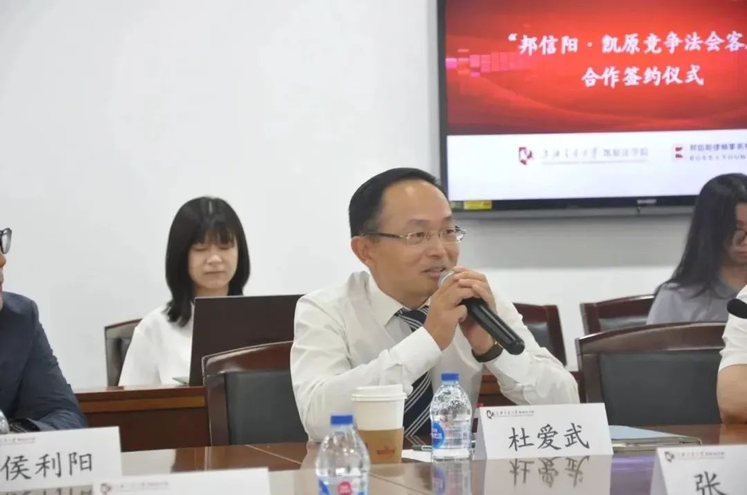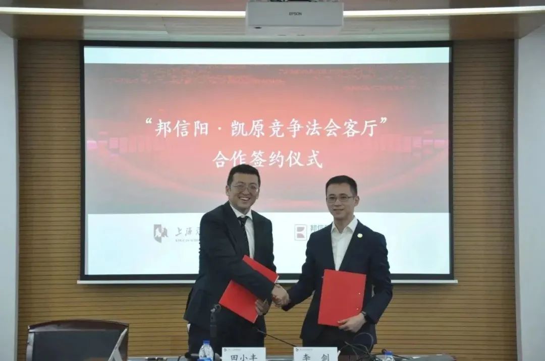 2023年6月20日上午,上海交通大学凯原法学院与邦信阳律师事务所关于合作开展“邦信阳·凯原竞争法会客厅”学术交流活动的合作签约仪式正式举行。上海交通大学特聘教授王先林、上海交通大学凯原法学院副院长李剑教授、凯原法学院侯利阳教授以及邦信阳律师事务所主任杜爱武律师、合伙人田小丰律师、张士海律师、陈云开律师等参加签约仪式。