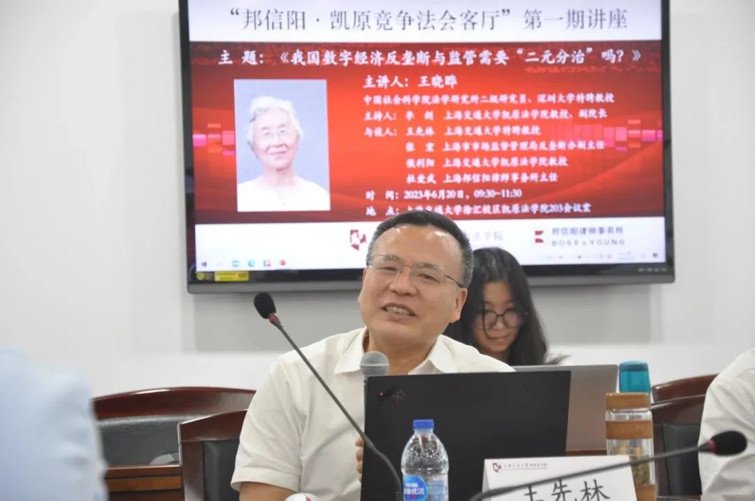 上海交通大学特聘教授王先林首先感谢王晓晔教授的精彩讲座。王先林教授从概念入手,介绍了“反垄断”和“监管”在学理上的区别,分析了欧盟竞争法与美国法对待数字经济反垄断的不同态度及其成因。王先林教授呼应王晓晔教授的观点,提出考虑到不同国家的实际情况,对于欧盟《数字市场法》的监管做法,应当高度重视、但不急于引进;对待我国数字经济,应当审慎监管、精准执法,更好地促进市场发展。