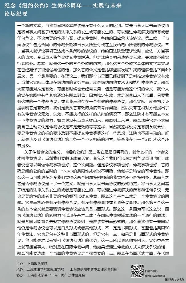 1月30日,上海政法学院佘山国际法律云裳视频论坛第八期——“纪念《纽约公约》生效63周年——实践与未来”通过腾讯会议在线举办。本次论坛由上海政法学院、中国国际私法学会国际商事仲裁专题委员会主办,上海政法学院国际法学院、上海邦信阳中建中汇律师事务所承办,上海市法学会“一带一路”法律研究会协办,来自清华大学、上海政法学院、中国政法大学、外交学院、汇仲律师事务所等高校、律所的6位专家学者进行了发言,校内外师生近两百人参加了本次论坛。