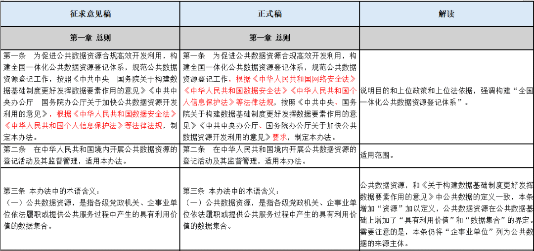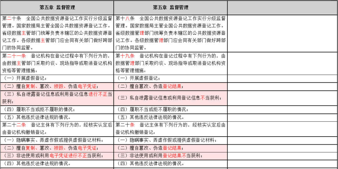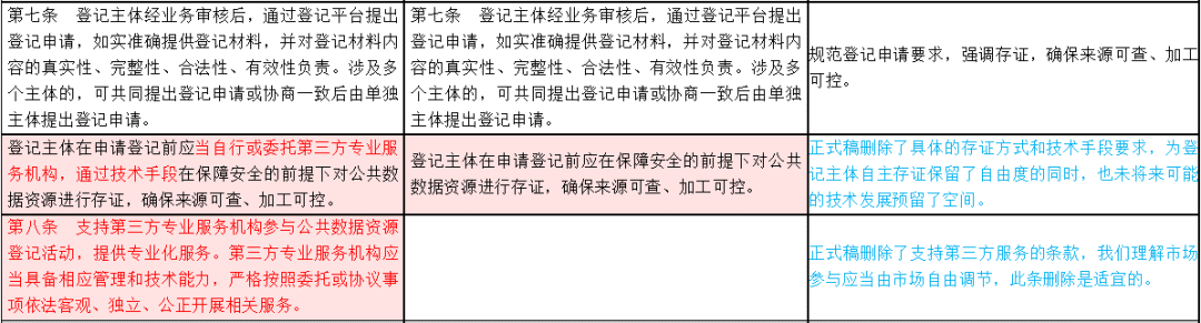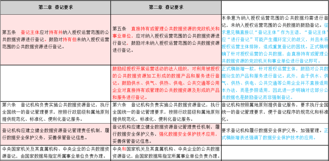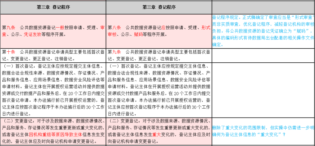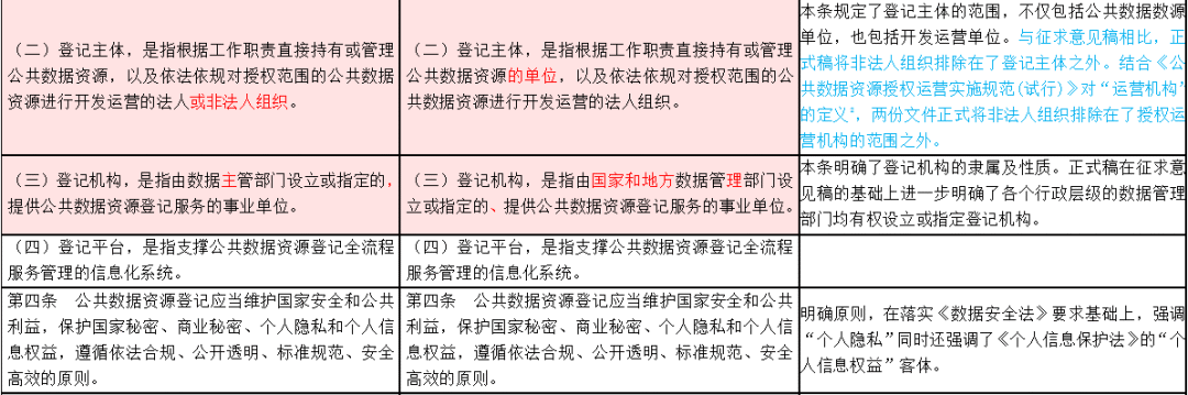 《公共数据资源登记管理暂行办法》征求意见稿与正式稿对比表