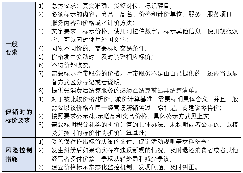 结合两部规章的内容和实务经验,本文分为以下部分进行讨论,首先是明码标价的一般性要求;其次是价格促销、有奖销售以及积分礼券三种促销活动中标价的具体要求;再次是价格欺诈的认定;最后是合规建议。