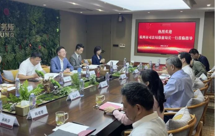 2023年10月12日下午,杭州市司法局党委书记、局长徐前,副局长李军,办公室主任李瑛,秘书处处长彭志芳,律工处处长刘晓辉,钱塘区司法局副局长陈建楚,行政科副科长王伟一行赴邦信阳杭州办公室走访调研。邦信阳杭州办公室主任杨高波,高级合伙人应文状、吴迪、郑怡、彭根堂,合伙人孙秋萍、杨光、李辉辉,专职律师梅亚晨等进行接待并参加了本次调研会议。