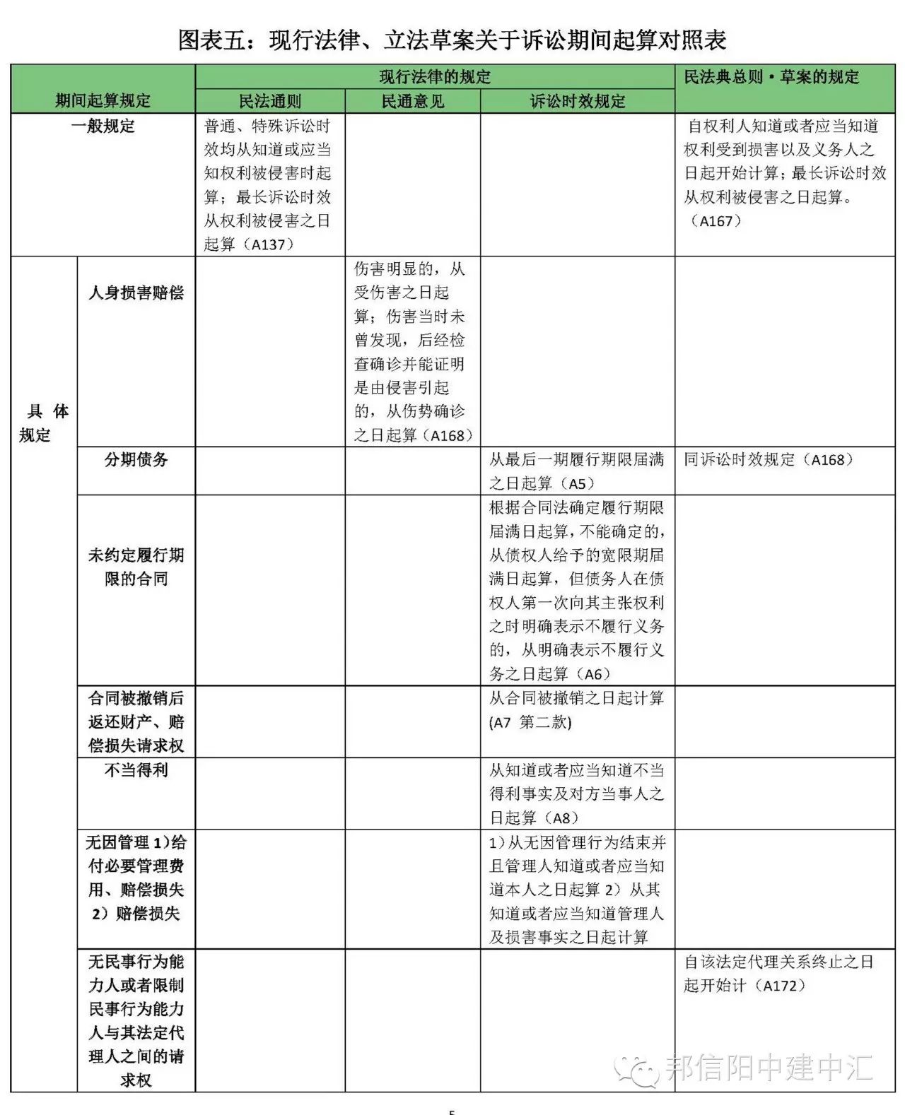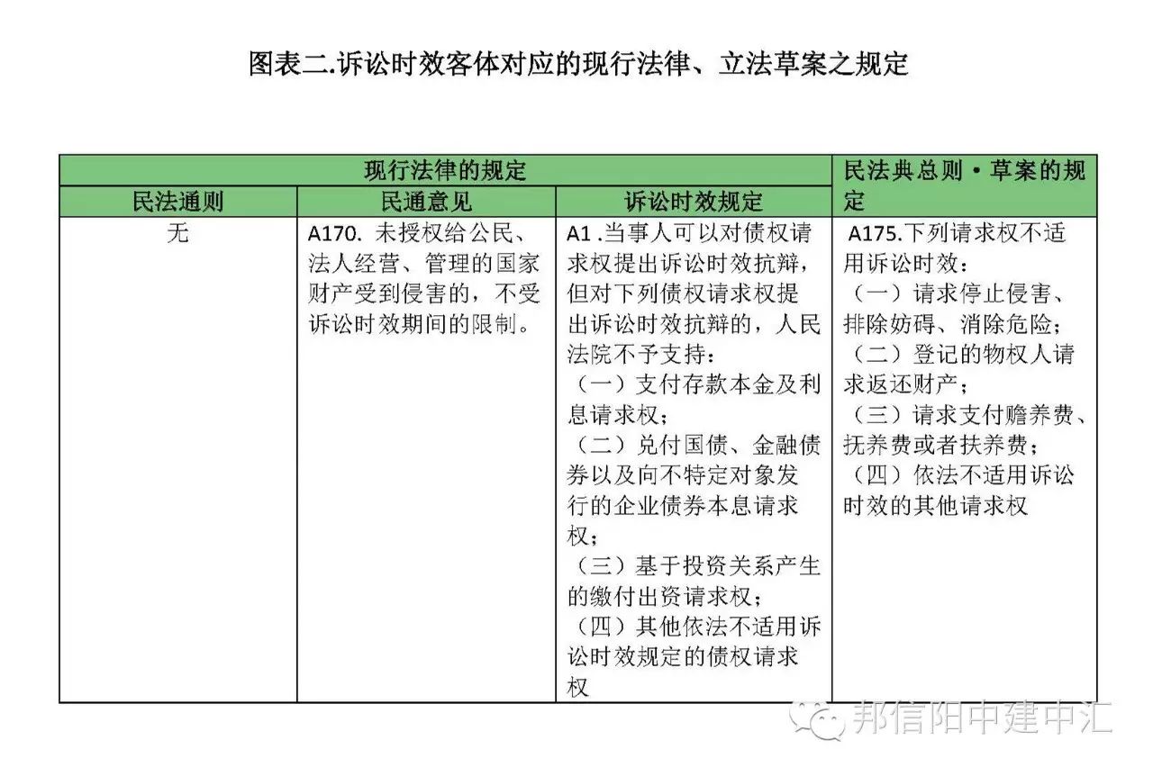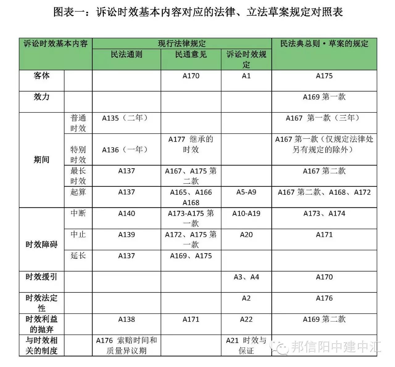 我国目前规定最主要还是民法通则、民通意见和诉讼时效规定。鉴于民法典·总则(草案)中对此也有明确,为方便对照,笔者将以上规定试列图表如下: