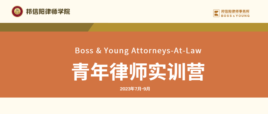 邦信阳律师学院系邦信阳面向青年律师设置的学习平台。学院目前设置有面向在校生的“邦培夏令营”项目、面向应届生的“春华秋实”项目、面向青年律师的“青年律师实训营”项目等,可为青年律师提供全面系统化的学习、交流、培训内容,帮助青年律师成长。