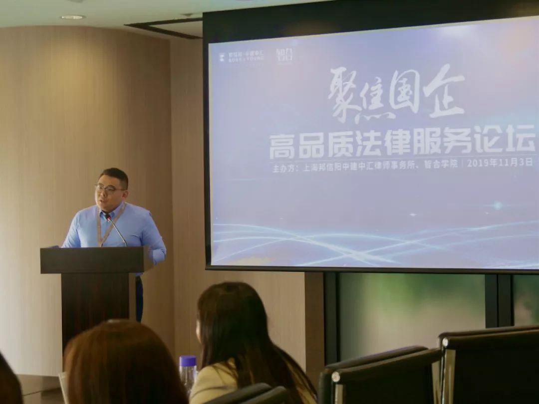 论坛的第一部分,来自国企、律师事务所、仲裁机构以及法律服务第三方机构的代表,分别以不同视角对国企法律服务需求这一话题发表了自己的观点。上海邦信阳中建中汇律师事务所合伙人陈斌寅律师担任该环节的主持。