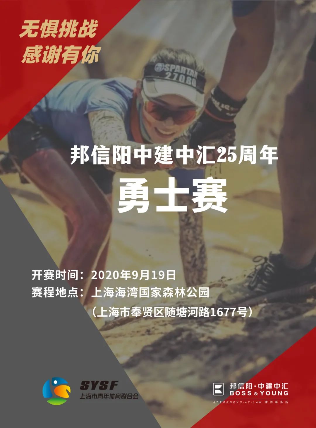 邦信阳中建中汇事务所联合上海青体联举办的“无惧挑战,感谢有你——5KM障碍越野赛”即将于2020年9月19日在上海海湾国家森林公园激情开赛。