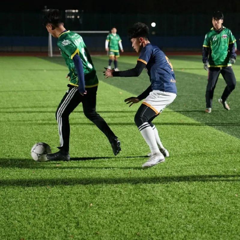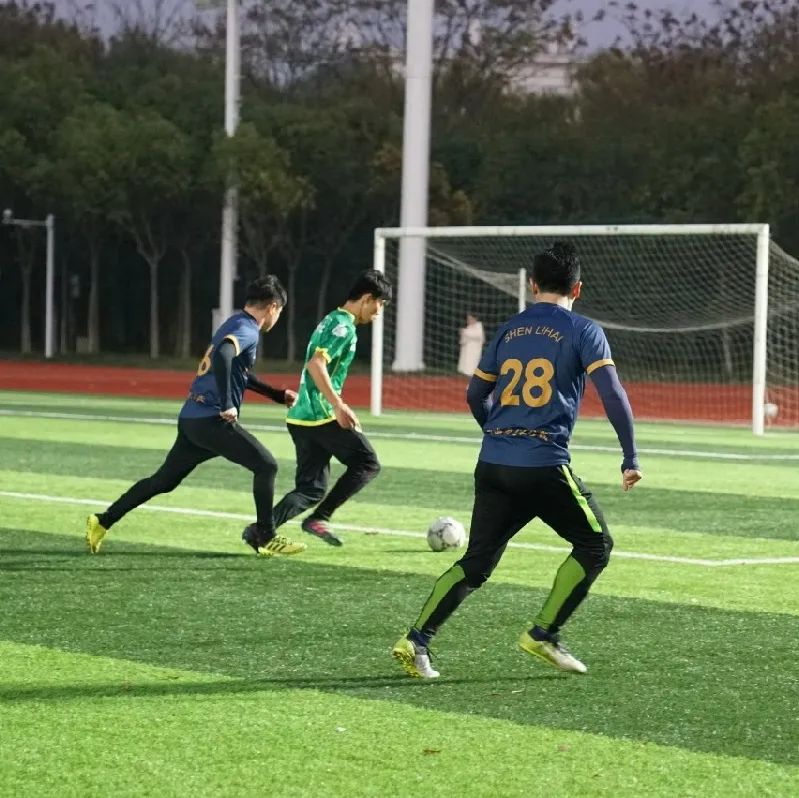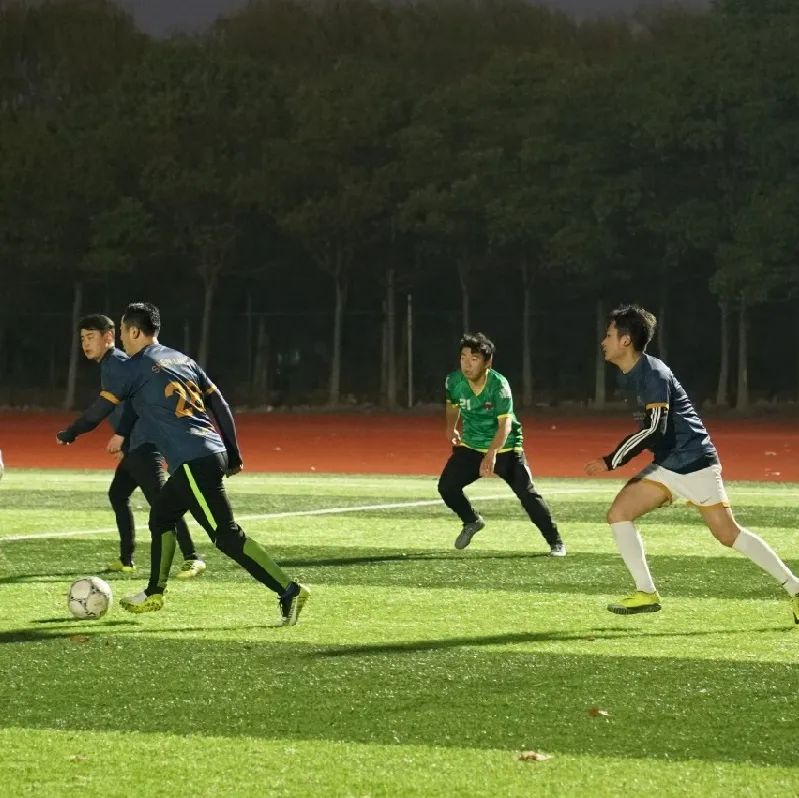 下半场比赛,华政派出了校园组足球队,双方陷入胶着,场上球员们都尽力抵挡着寒意侵袭,在球场上挥洒汗水。下半场以 0 : 0 结束,邦信阳中建中汇以两分差距领先华东政法大学。