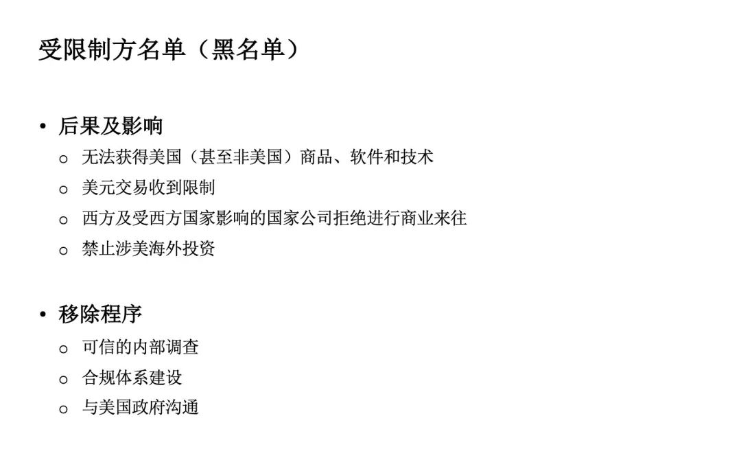 第四部分“美国贸易管制法规对中国的影响”,张弌老师从现今贸易战大环境出发,准确客观地从受限制对象与惩罚措施等方面分析了美国贸易管制对中国企业的影响,并进一步结合具体案例进行分析,为同学们以后参与相关实务操作工作打下了基础。