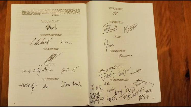 中华人民共和国代表团成员在《公约》最后文件上签字