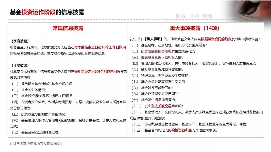 投资运作阶段的信批(常规信息披露+重大事项信批)