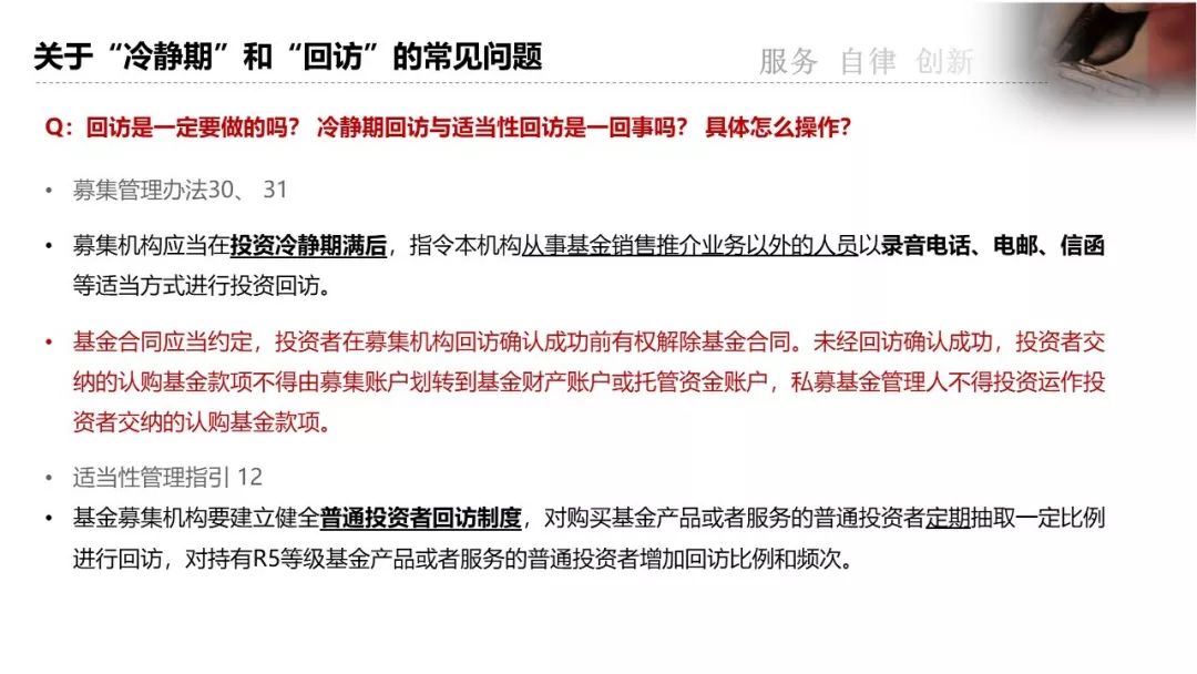 募集阶段常见问题(冷静期、回访、双录、投资者评估数据库、适当性回访)
