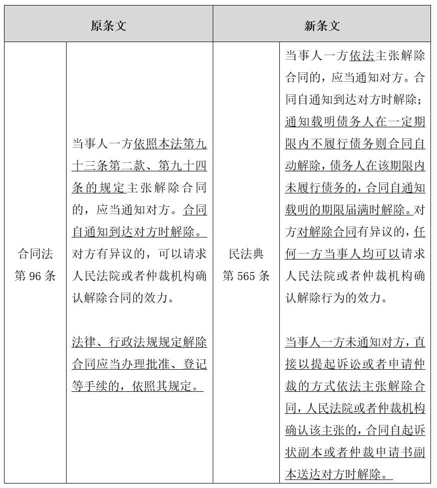 民法典565条第二款则是对以诉讼或仲裁方式解除合同的时间点进行了确认,这一问题在此前的司法实践中存在争议。