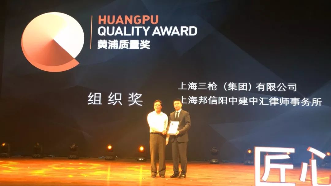 据悉,第二届届黄浦区区长质量奖评审工作于2018年3月正式启动,根据《黄浦区区长质量奖管理办法》规定,在组织和个人自愿申报,有关行业主管部门、集团公司、行业协会推荐的基础上,经资格审查、资料评审、现场评审、综合评审以及黄浦区区长质量奖评审委员会审定,最终,上海三枪(集团)有限公司、上海邦信阳中建中汇律师事务所、上海上药华宇药业有限公司3家单位获得组织奖。