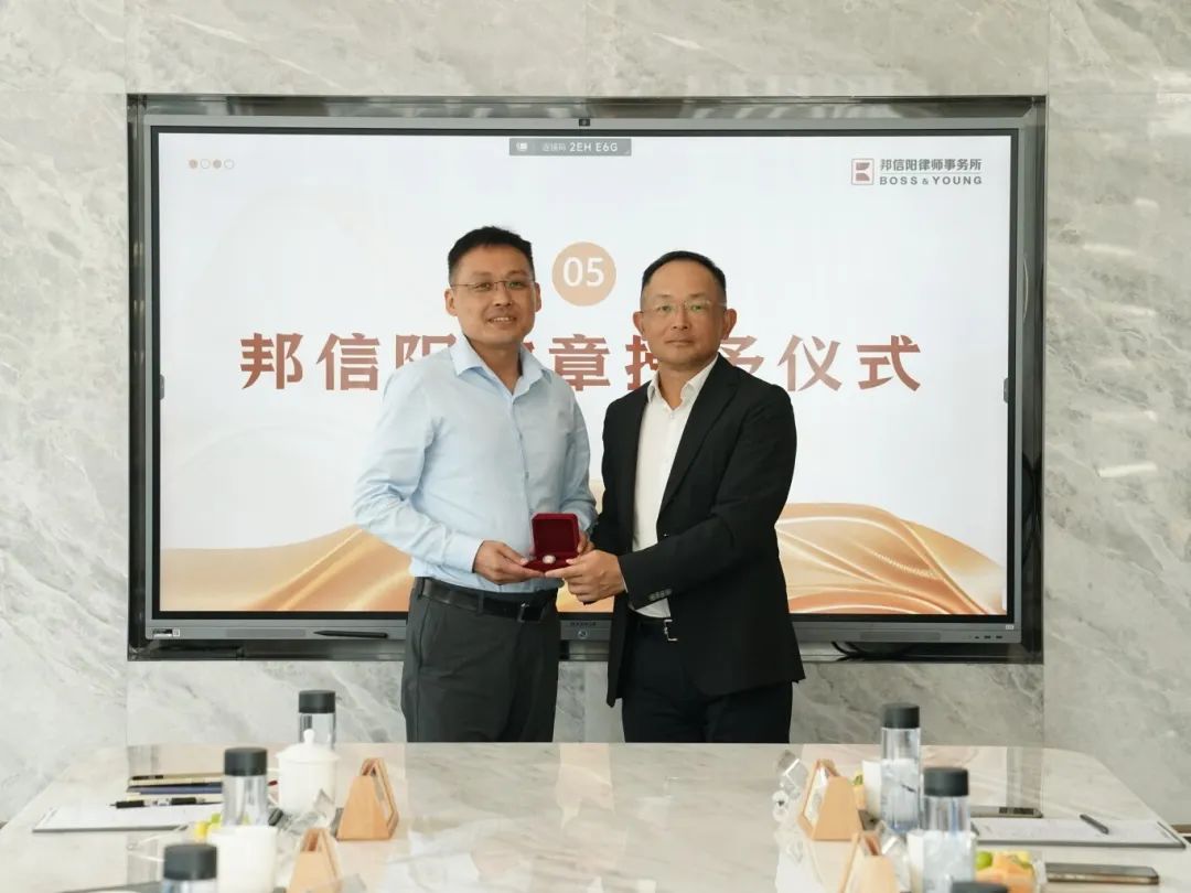 接下来,杜爱武律师等为新进合伙人授予邦信阳徽章,标志着5位优秀律师正式加入邦信阳这一充满活力,永葆进取心的大家庭。