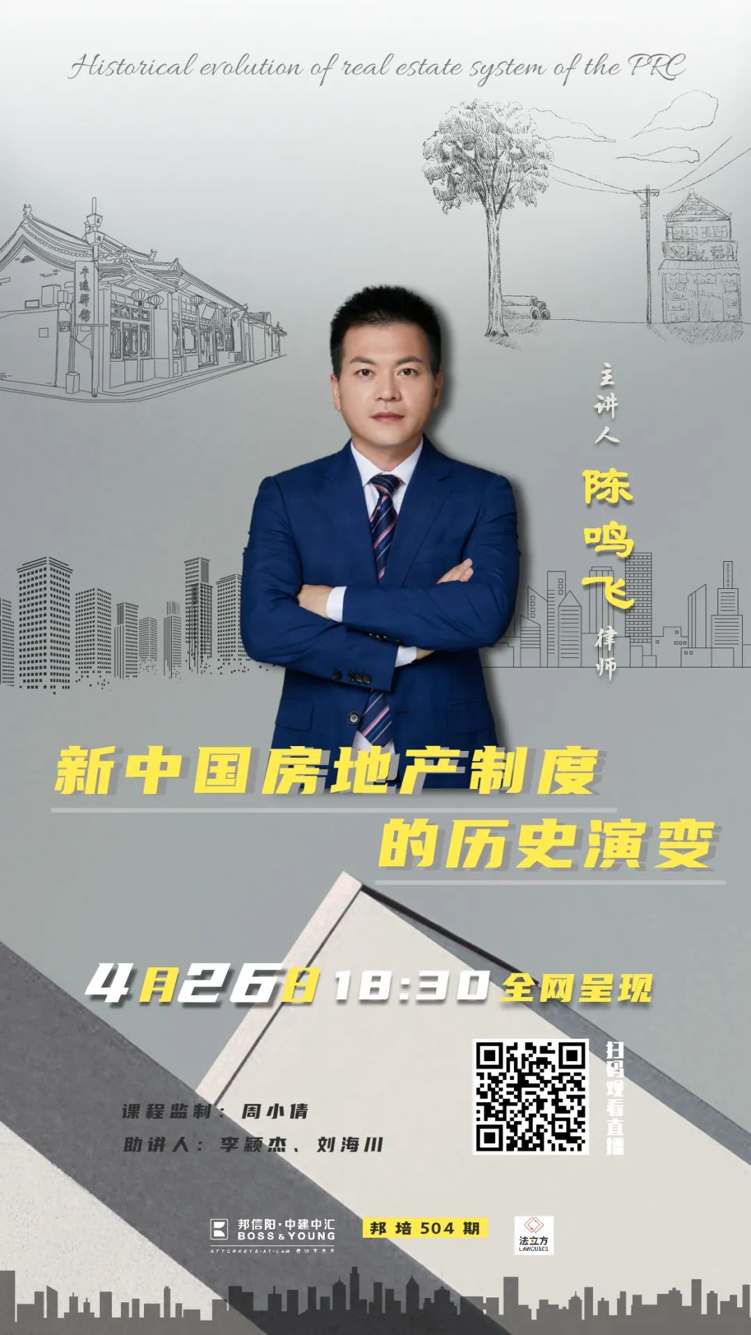4月26日(周二)18:30,上海邦信阳中建中汇律师事务所陈鸣飞律师主讲邦培第504期——“新中国房地产制度的历史演变”。
