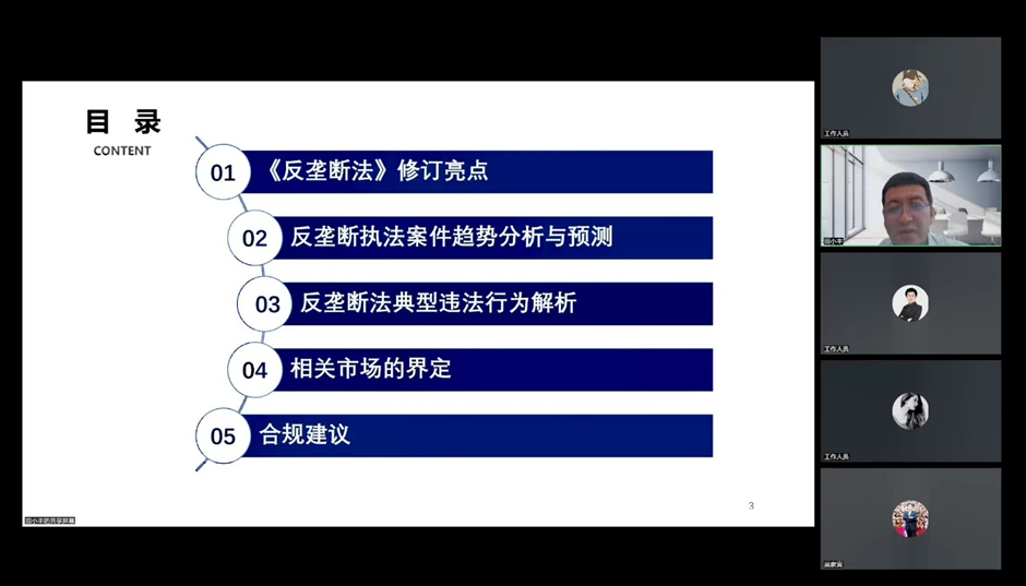 讲座中田律师围绕着《反垄断法》的修订,从反垄断执法案件趋势、典型违法行为案例、相关市场界定分析及企业合规建议等几个方面做了介绍和分析。本次讲座共吸引国有企业法务与合规人员300余人参与,并得到了与会人员的广泛好评。