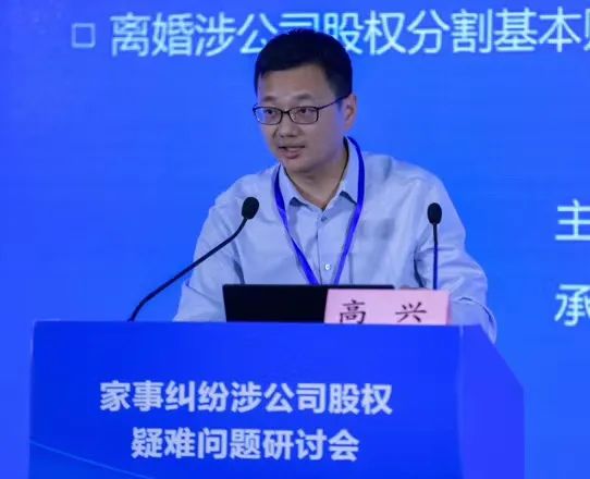 次日,由中华全国律师协会婚姻家庭法专业委员会主办的“家事纠纷涉公司股权疑难问题研讨会”在同一场地举办,高兴律师受邀参加本次研讨会,并在会上作了题为“夫妻离婚合意分割股权的规则重构”的发言。