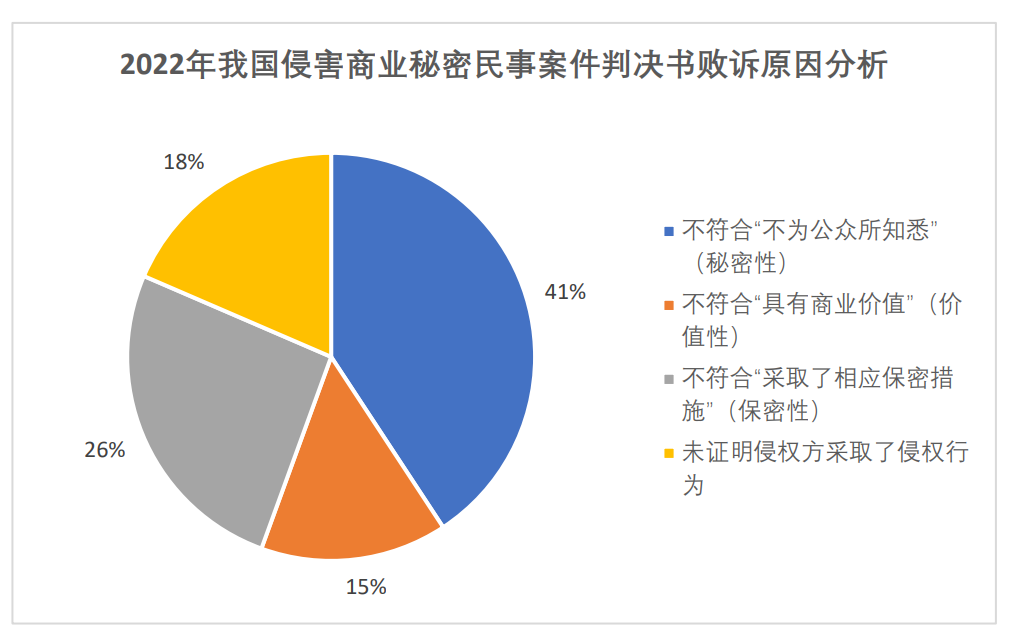 分析上述27份判决书,我们发现,众多企业之所以败诉,原因主要在于:其一,很多企业在日常经营过程中,疏于对商业信息秘点的梳理,导致泄密事件发生后,案涉商业信息的秘密性、价值性难以固定证据,以致相关商业信息无法被认定为商业秘密。其二,未采取和商业价值相适应的保密措施,因而导致败诉,如保密协议未就商业秘密具体范围和保密要求进行明确规定,未就商务合作中第三人泄密情形约定保密义务,导致案涉商业信息无法被认定为商业秘密等。