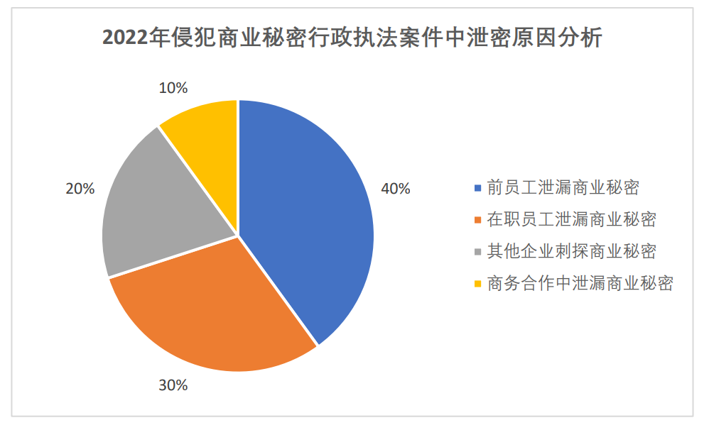 在披露所涉行业领域的行政执法案件中,约40%的案件的泄密原因与离职员工违反保密义务有关。我们认为,导致此类情况发生的原因有两点:其一,疫情发生以来,多个行业出现了大量的人员流动,企业因此需要面对的交割文件、资料也更为繁杂,稍有疏忽便容易造成商业秘密泄露。其二,一些员工为了在之后的行业竞争中保持优势,倾向于在离职过程中“带走”原企业的配方、技术秘密、客户资料等商业秘密。为此,企业需要在合规制度搭建过程中予以重视。