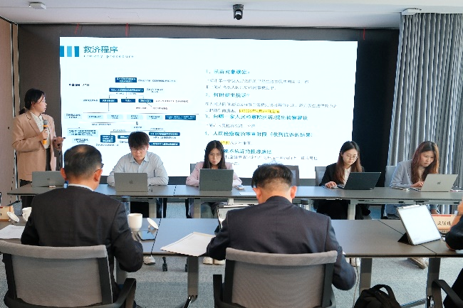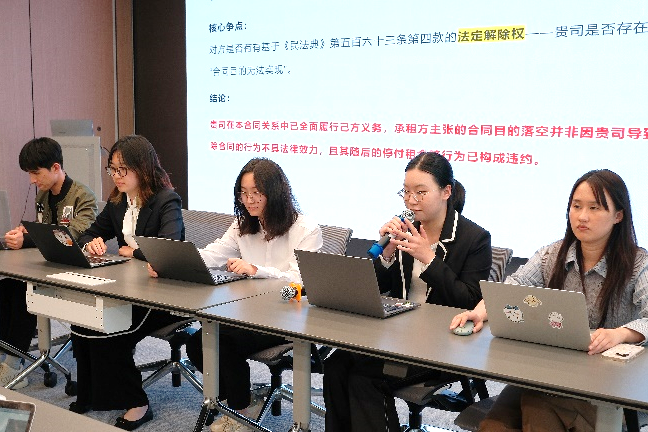 下午,各组准时提交了法律服务方案,“述标”环节正式拉开帷幕。五个小组依次向评委展示精心准备的法律服务方案,评委们针对方案内容进行随机提问,考察同学们的专业知识和应变能力。同学们沉着冷静,对答如流,展现出了扎实的专业功底和良好的精神风貌。