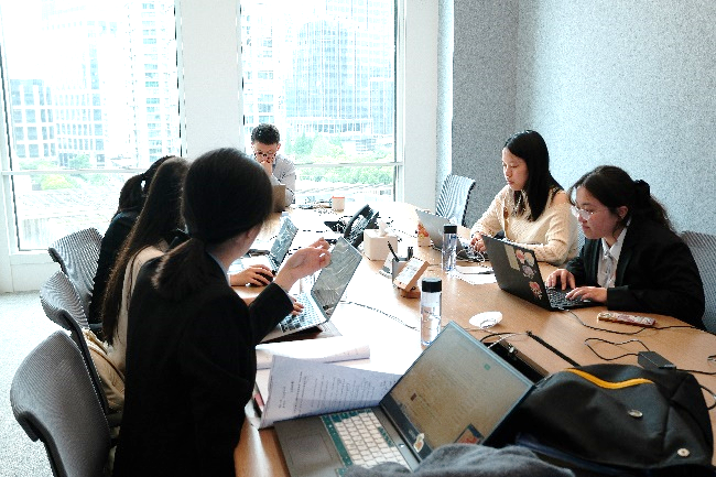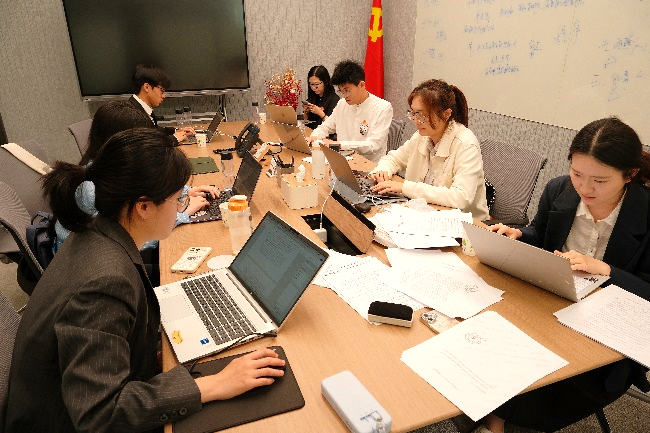 在主持人详细介绍了活动规则后,同学们分散至各个小会议室,开始紧张而有序的讨论。大家集思广益,商议诉讼策略,共同完成法律服务建议书的写作。