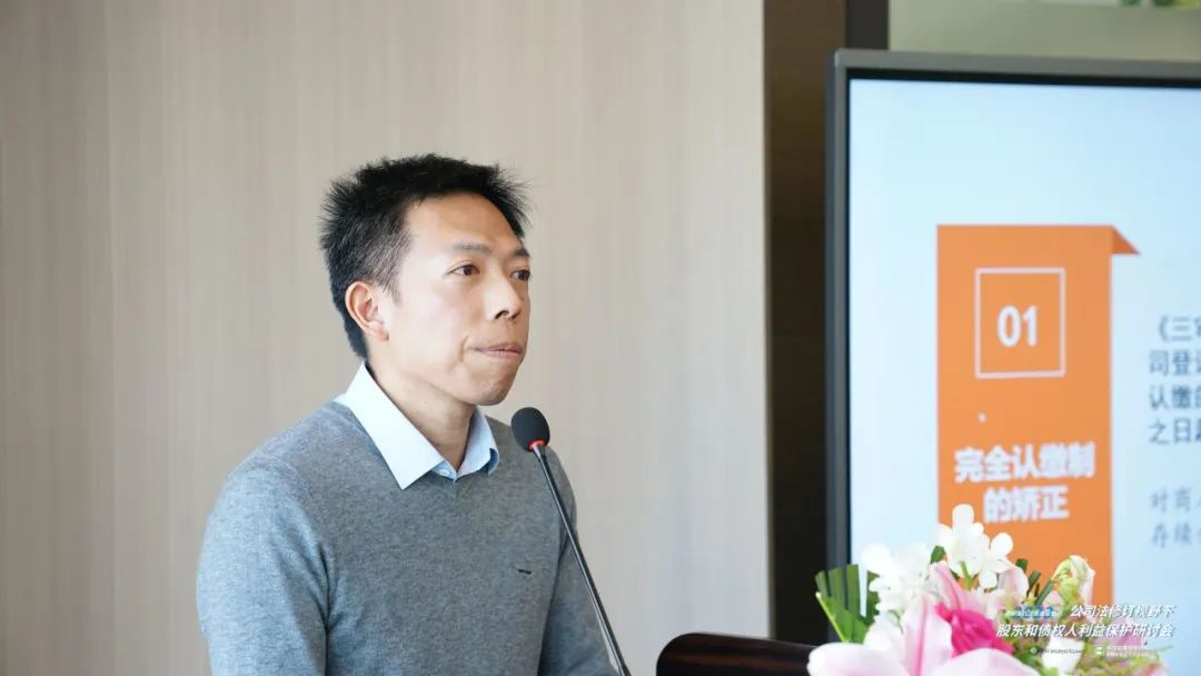 上海邦信阳律师事务所合伙人史羽鸿对“有限公司股东出资加速到期规则的实践难点”进行了报告,他指出: