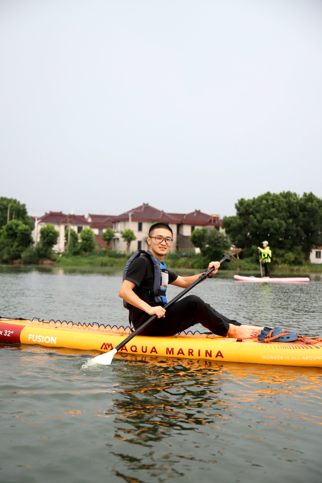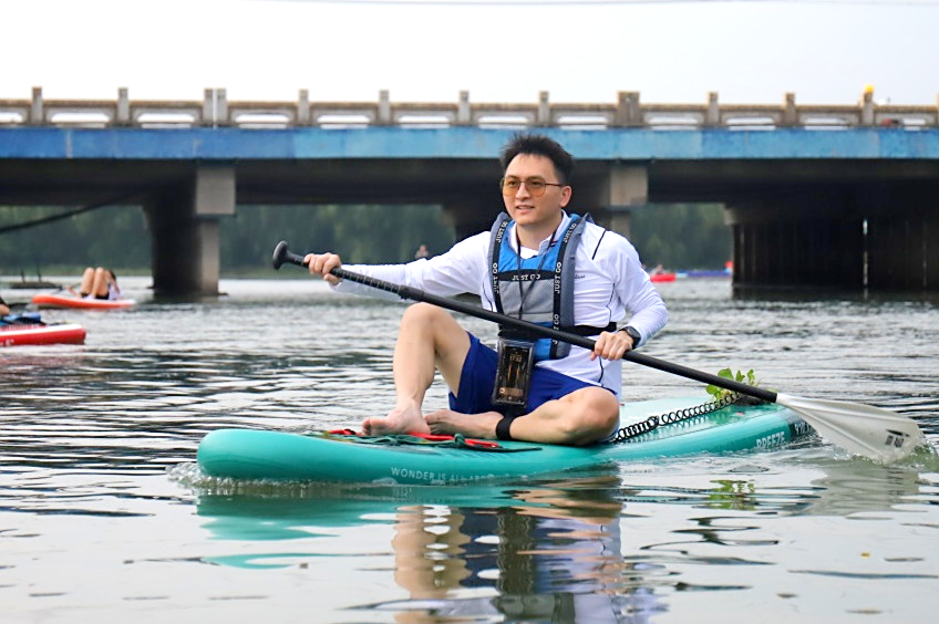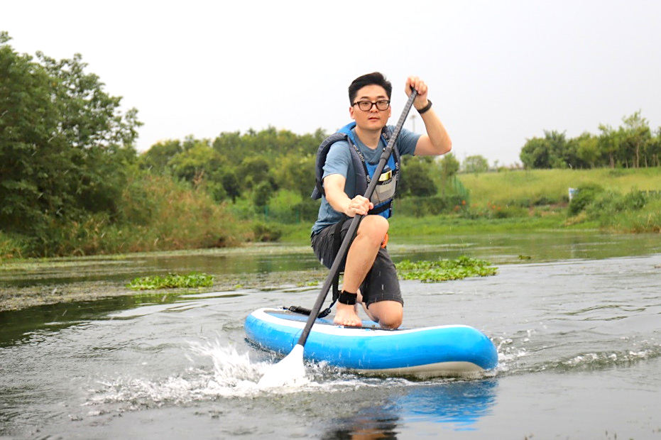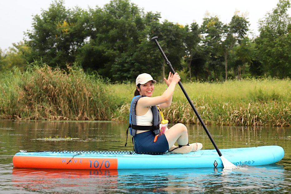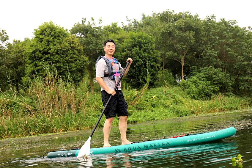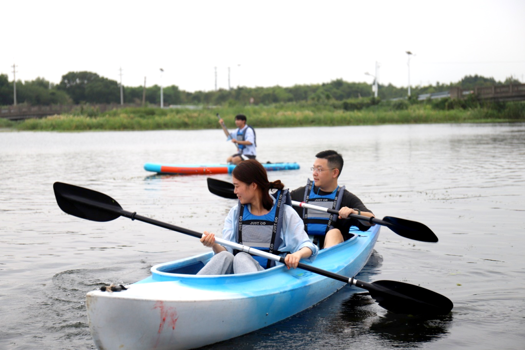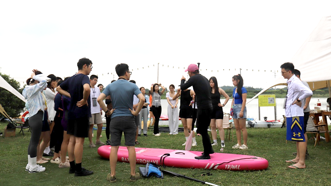 紧接着,在专业教练的悉心指导下,成员们系统学习了桨板运动的基础知识与安全规范。穿戴好救生装备后,大家有序下水,开启了一场沉浸式的淀山湖桨板之旅。