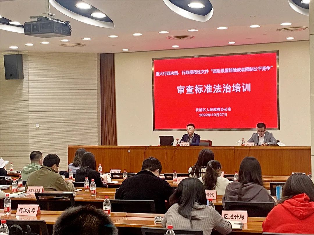 邦信阳中建中汇律师对黄浦区人民政府行政规范性文件、重大行政决策公平竞争审查进行专题讲座