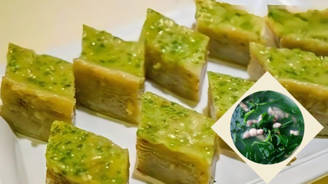 苦菜汤经常与九层粿相伴出现。苦菜虽名字中带着“苦”,但细品之下却有一丝甘甜。苦菜的好搭档是小肠或豆腐,小肠很有弹性和嚼劲,而豆腐有种入口即化的感觉。当热腾腾的汤端上来放到你面前时,你会有种要胃口大开的感觉。