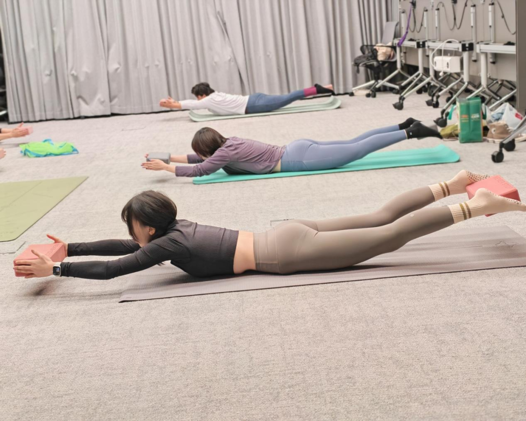 后来,我们开始学会察觉呼吸,学会在此起彼伏的“哎哟”声中大笑,学会在下犬式中感受血液回流大脑的清醒。