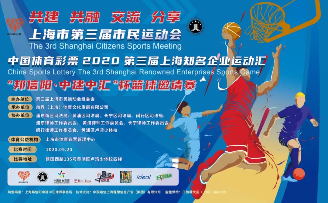 今天(9月20日),上海市第三届市民运动会暨2020第三届上海知名企业运动汇之“邦信阳中建中汇”杯篮球邀请赛在黄浦区建国西路135号卢湾体育中心四楼火热打响。