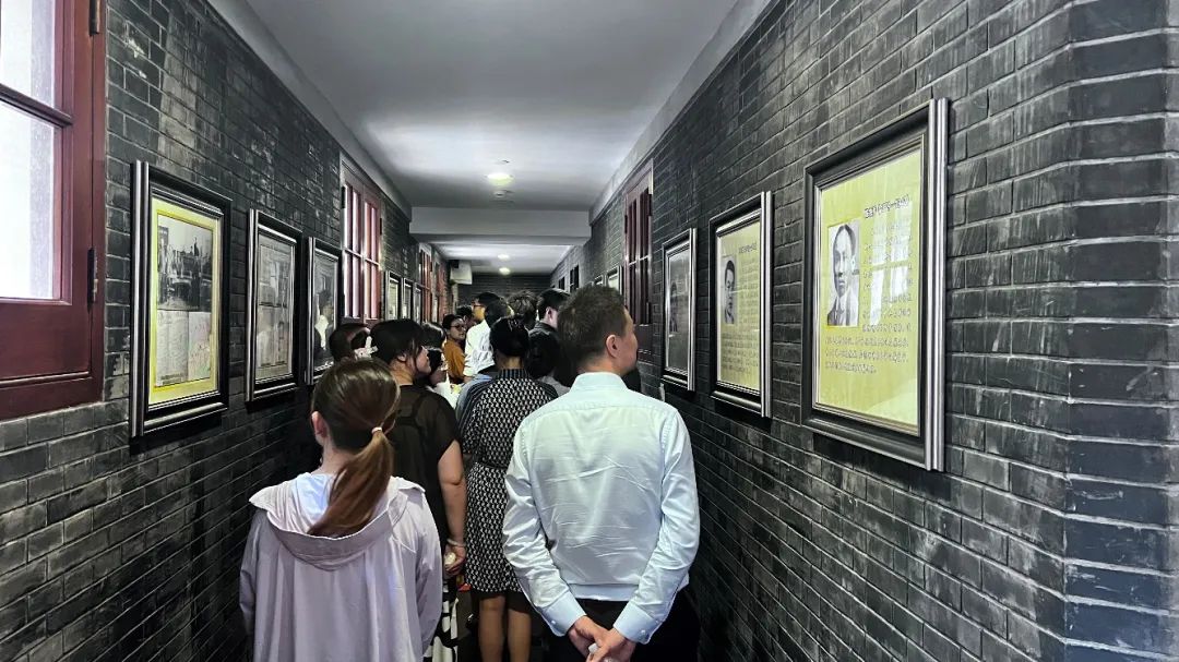 随后,来到了“红色足迹”长廊,墙上挂着一幅幅革命先烈的照片。作为警务处旧址,党的第一代领导人、中共中央局第一任书记陈独秀,曾于1921年和1922年两次被关押在此。这里也见证了不少仁人志士为救亡图存、民族振兴、人民解放进行不屈不挠、艰苦卓绝的斗争。