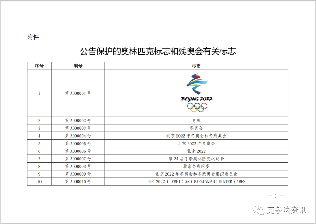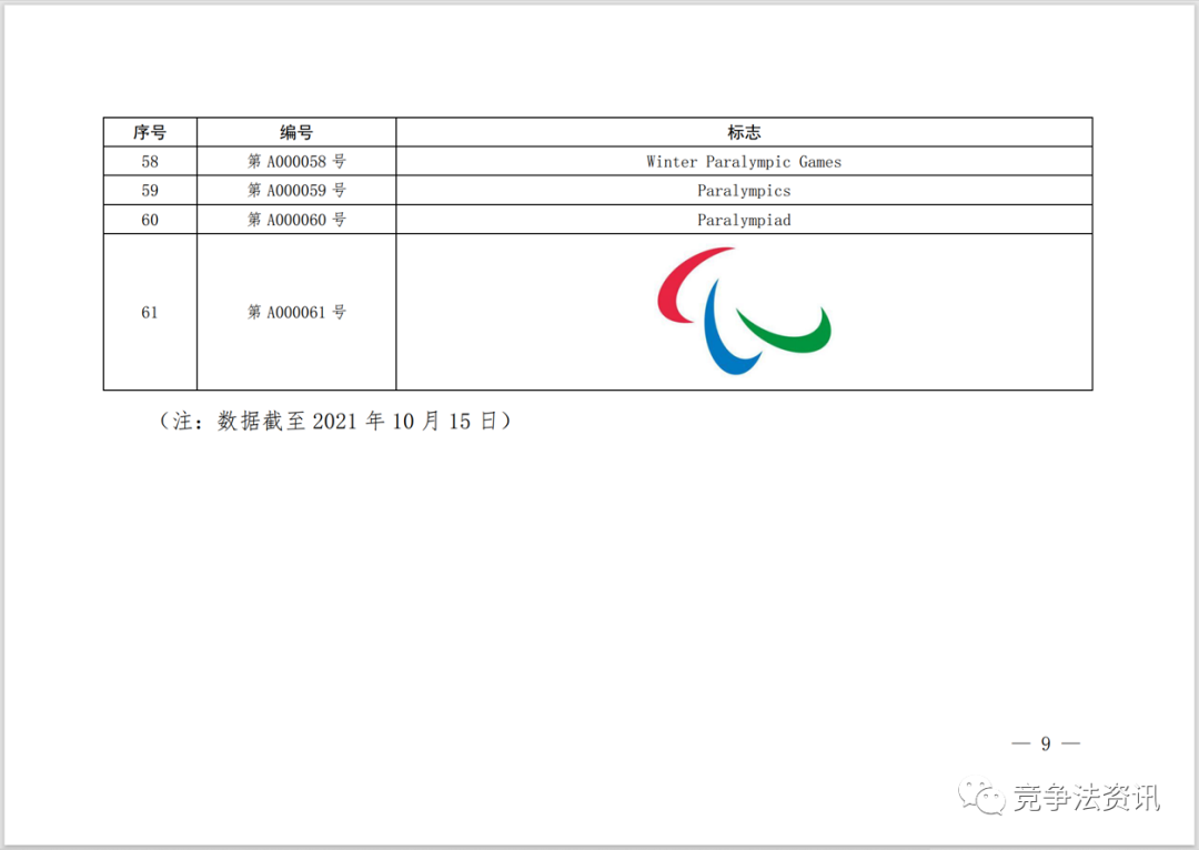附:国家知识产权局、国家市场监督管理总局公告保护的奥林匹克标志和残奥会有关标志