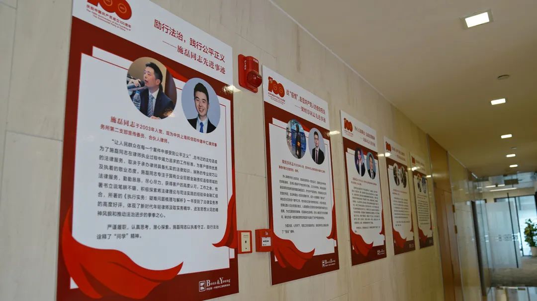 事务所党委制定《党员先进事迹展示工作方案》,事务所中不乏在服务社会、为人民服务、乡村法治建设、贯彻律师使命、专研学术著书立说等方面做出杰出贡献的优秀党员,通过宣传板、微信公众号等途径展示他们的先进事迹,充分发挥先进党员的榜样示范作用。