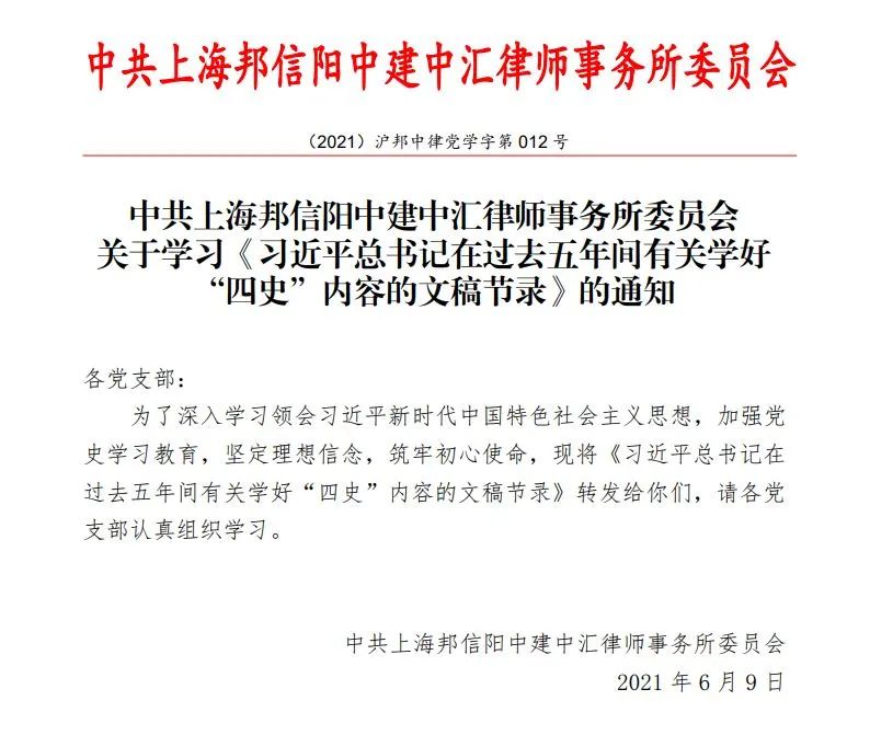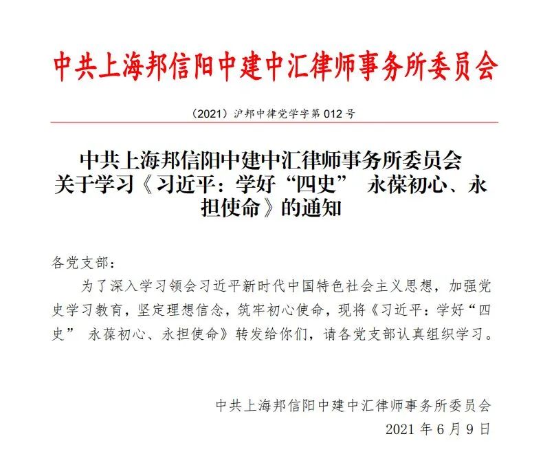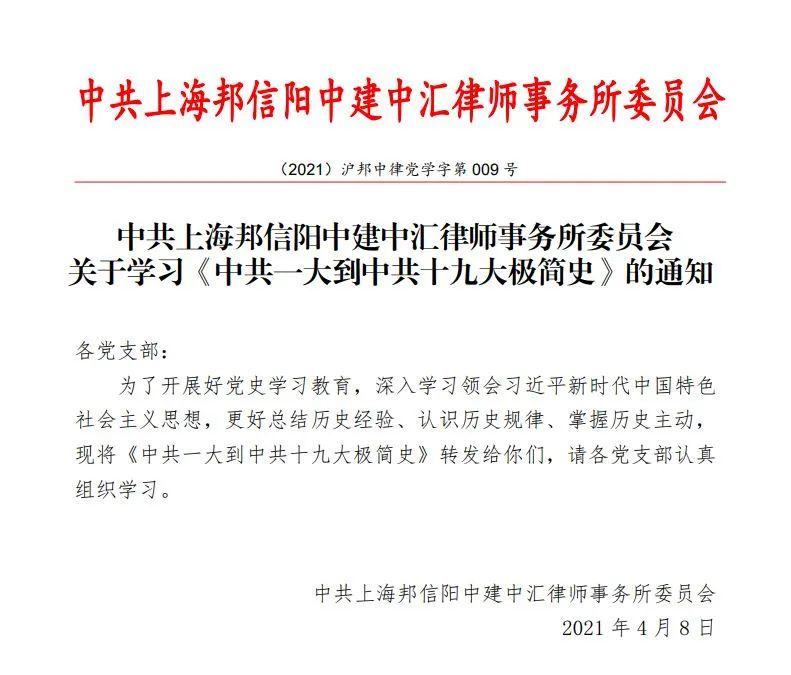 邦信阳中建中汇党委认真落实上级党委开展党史学习教育有关部署要求,扎实有序开展多层次、多形式的党史学习教育,明确继承传统、立足当前、开创未来的实践要求,着重以“七项学习 一项实践”为工作主线,切实做到学史明理、学史增信、学史崇德、学史力行。