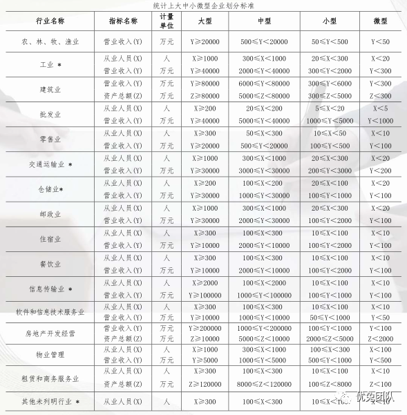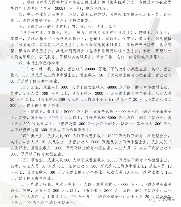 以下为截取的部分中小企业/大中小微企业划分标准:
