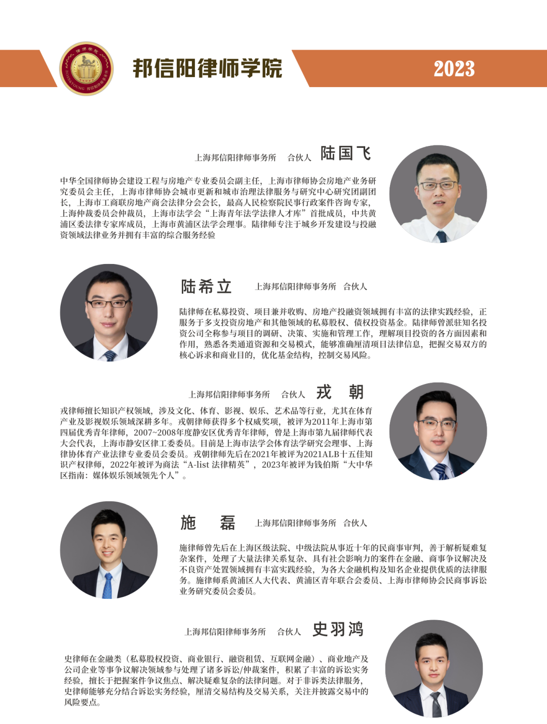 邦信阳律师学院系邦信阳面向青年律师设置的学习平台。学院目前设置有面向在校生的“邦培夏令营”项目、面向应届生的“春华秋实”项目、面向青年律师的“青年律师实训营”项目等,可为青年律师提供全面系统化的学习、交流、培训内容,帮助青年律师成长。