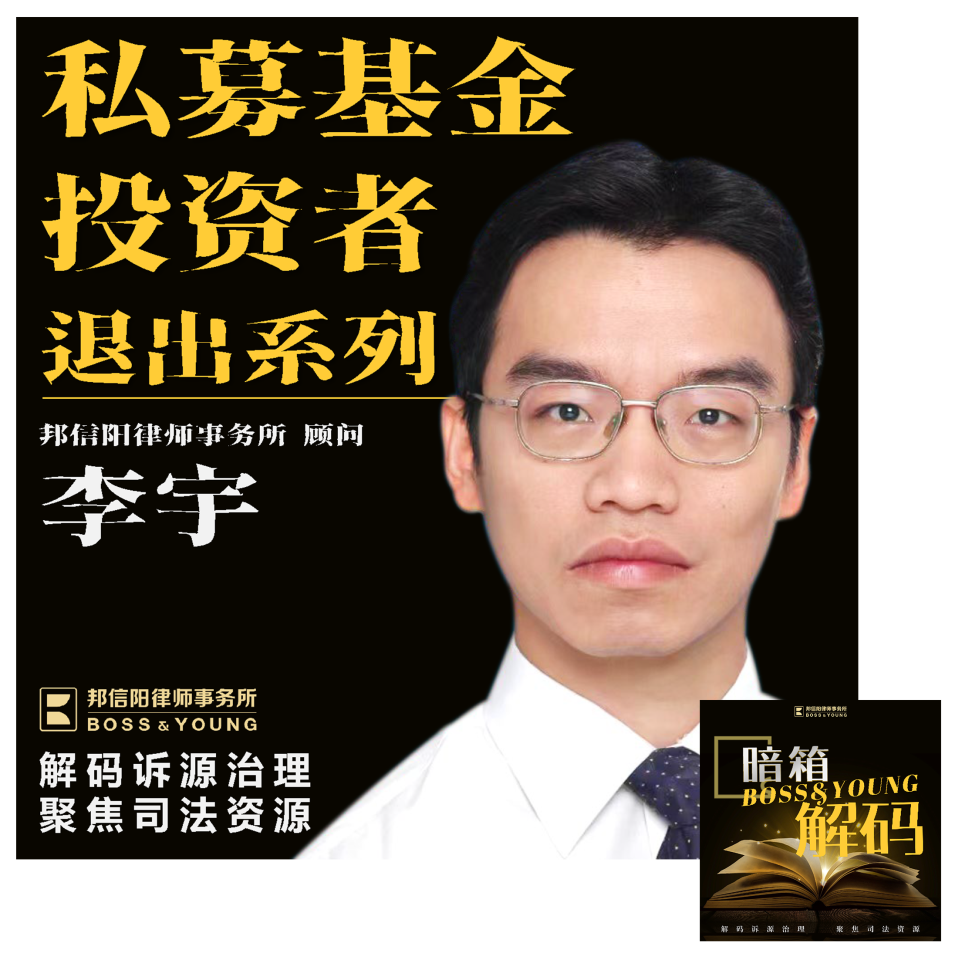 与此同时,邦信阳联合上海财经大学法学院教授、商法研究中心主任李宇老师,围绕私募股权基金投资者退出问题的实务动态,同步推出播客节目:【暗箱解码】私募基金投资者退出系列。