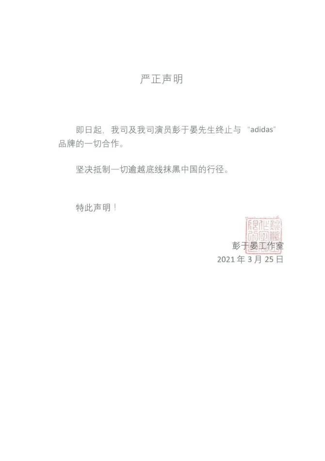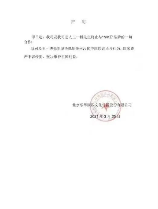 因此在事件发酵后,发现许多知名品牌商纷纷碰瓷抹黑并抵制新疆棉花后,众多涉事品牌商的签约代言人纷纷与其签约的品牌商发出声明并解约。