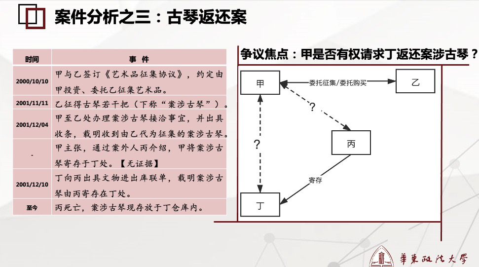 杨老师结合具体案例,为大家讲解了如何根据基础案件事实进行请求权基础检索(即依次检索基于合同的请求权、类似合同的请求权、无因管理请求权、基于物权法的请求权、侵权请求权、不当得利请求权),以确定相关请求权基础并对其进行拆解、如何将案件事实与请求权构成要件进行匹配、事实真伪不明时如何处理以及最后得出结论的整个过程。