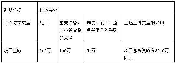 尽管使用国有企业事业单位自有资金并且国有资产投资者实际拥有控制权的项目属于《招标投标法》规定的强制招投标的项目,但这并不意味着凡是国有企业投资建设的工程项目,其所有的单一采购项目均需强制招投标。计委三号令第七条对属于强制招投标范围的各类工程建设项目,根据采购对象的不同,划分了不同的判断标准,具体如下: