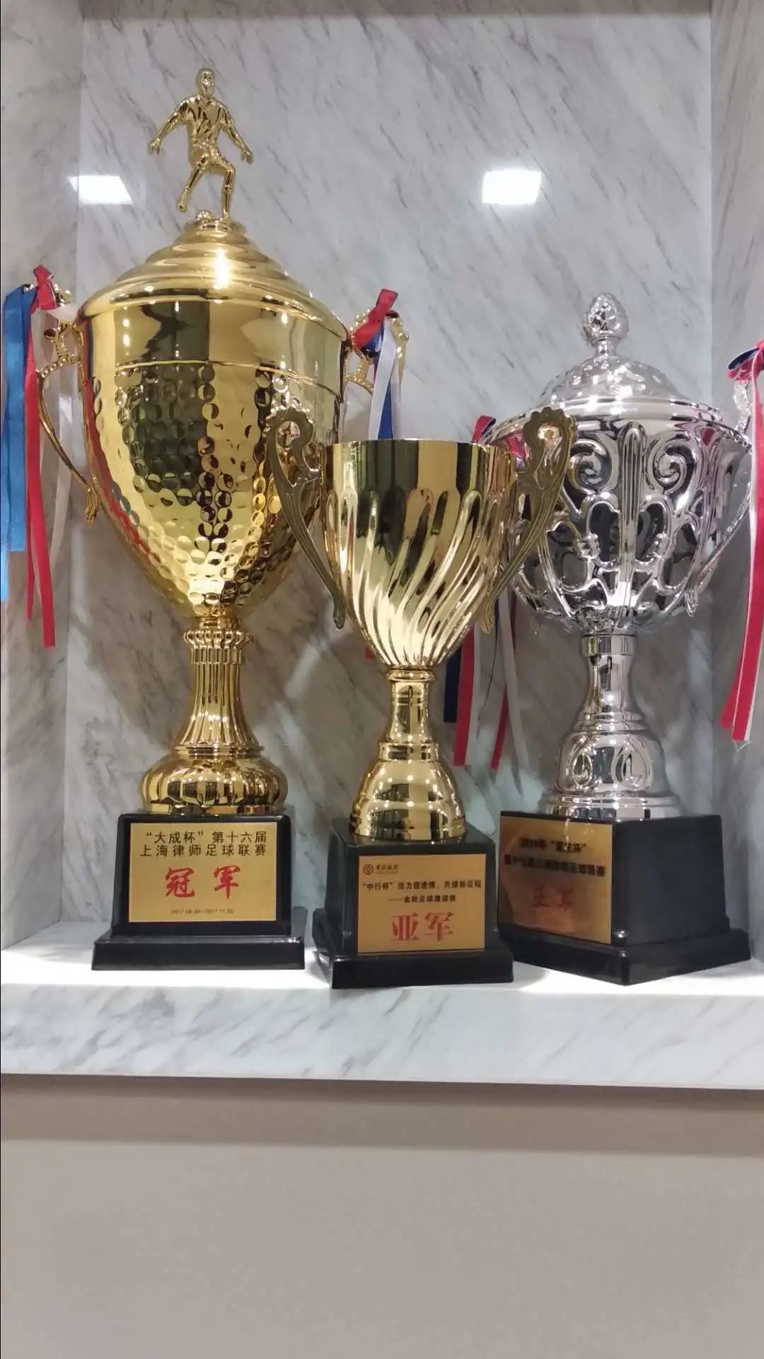 (历届部分奖杯及本届冠军奖杯)