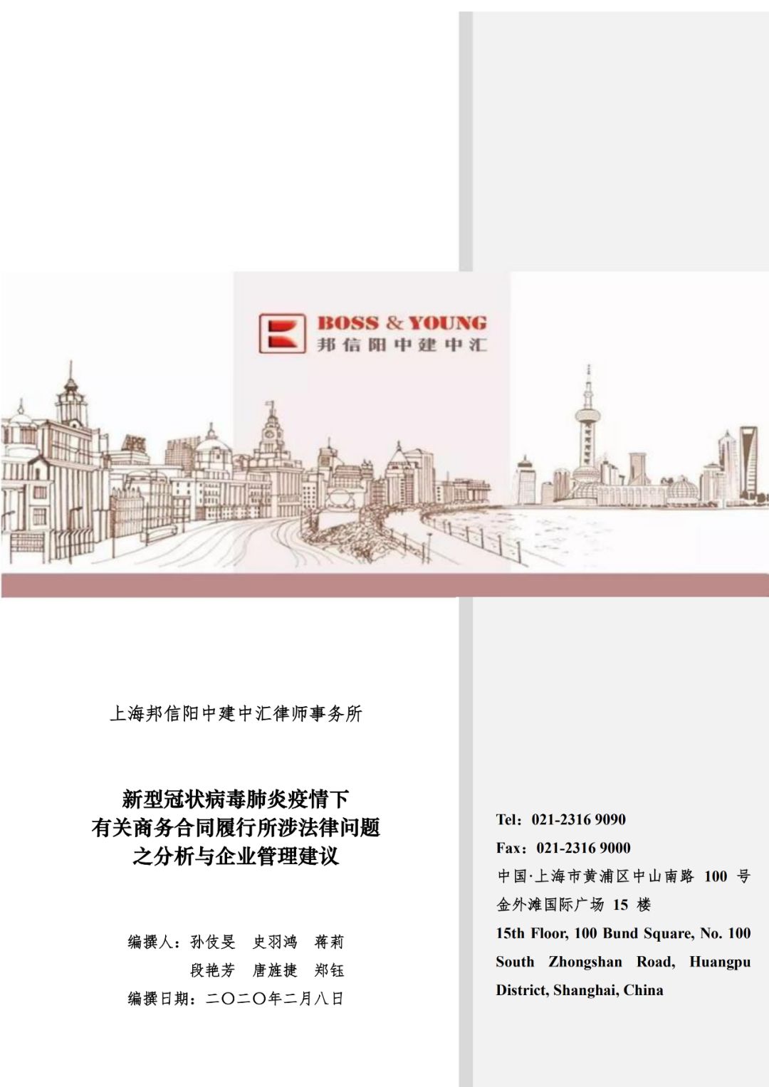 为解答企业在疫情中面临的种种新难题,邦信阳中建中汇迅速组建专业团队,对各类商务合同在疫情期间履行可能产生的法律问题进行解析,并就具体问题为企业提供相应的专业意见。内容涵盖劳动合同、一般货物买卖合同、商品房买卖合同、运输合同及餐饮、旅游、酒店合同等。