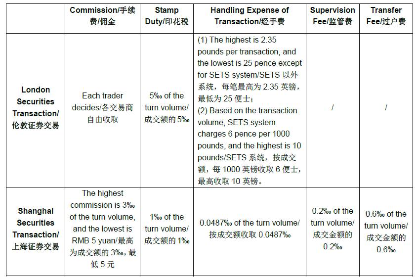 Foresaid content is a conjecture regarding the possible development direction of future Shanghai-London Stock Interconnection based on current relevant provisions of Shanghai-Hong Kong Stock Interconnection, and a brief comparison of transaction procedures and costs between SSE and LSEG.