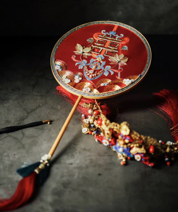 显然,具有美感的喜扇属于艺术领域的智力创作。喜扇这一智力创作是否具备独创性呢。根据尚且可以获得信息,可以认定微博博主“佳冉Jiaran”是独立创作完成喜扇这一智力创作,符合独创性中有关于“独”的要求。关于喜扇是否具有创作性的问题,喜扇以传统中式风格为主,选定大红色为背景,背景之上通过刺绣方式印有“双喜”、“荷叶”、“莲蓬”、“花朵”等艺术图案,且各艺术图案的空间位置也经过一定选择和安排,另外扇子的周边还有一小圈背白间隔的图案。此外,喜扇还搭载了红穗和多种颜色的配饰。以上均体现佳冉Jiaran的取舍、选择、设计、布局等创造性劳动。因此,“喜扇”具有审美意义,具备美术作品的艺术创作高度。