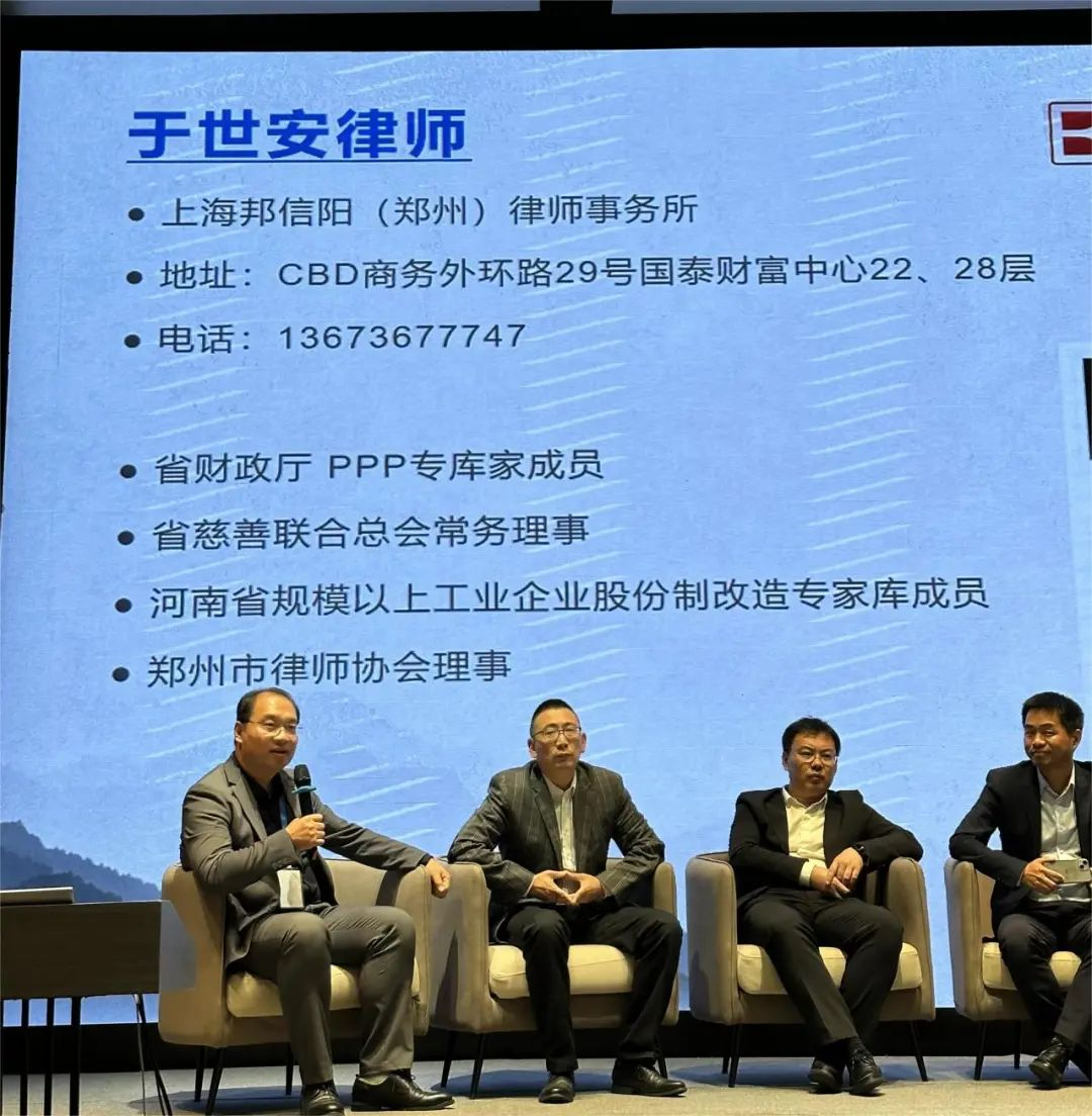 邦信阳郑州办公室负责人于世安在圆桌论坛环节结合自身经验,从城投公司自身特点及发展过程中面临的问题出发,浅谈未来城投国企如何实现高质量发展转型。