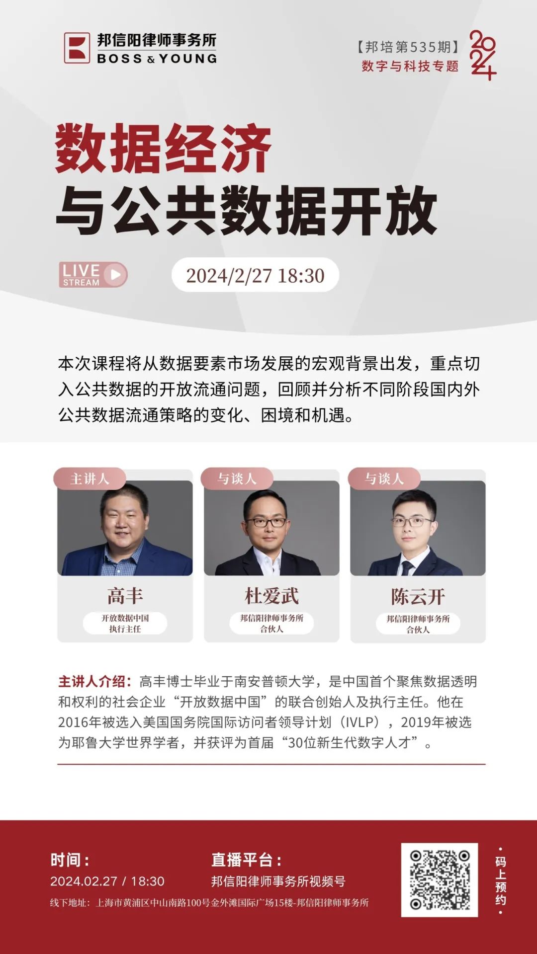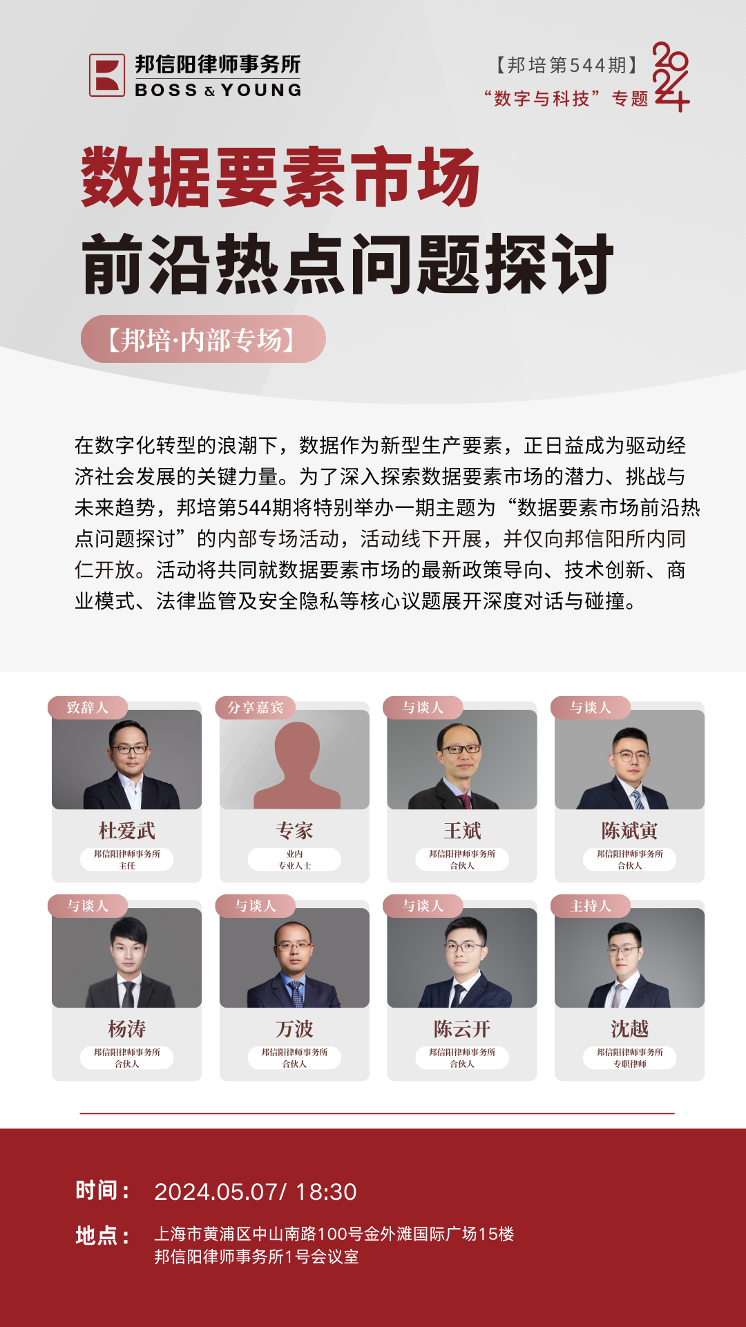 在数字化转型的浪潮下,数据作为新型生产要素,正日益成为驱动经济社会发展的关键力量。为了深入探索数据要素市场的潜力、挑战与未来趋势,2024年度邦培聚焦数据经济、公共数据、数据合规、数据要素市场、人工智能与版权、智能网联汽车等话题展开探讨。可以说,法律与科技的交汇点处处蕴藏着机遇。